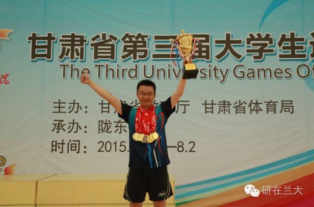 在大学期间,他依然没有放弃训练,在不耽误学习的前提下,刻苦训练,认真钻研。相较于小时候来说,取得了较为明显的进步。在硕士研究生三年的时间里,通过参加一系列省级比赛,积累经验,终于在甘肃省大运会上一鸣惊人,夺得了男子单打,团体双料冠军以及男子双打季军的出色成绩。