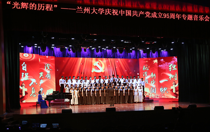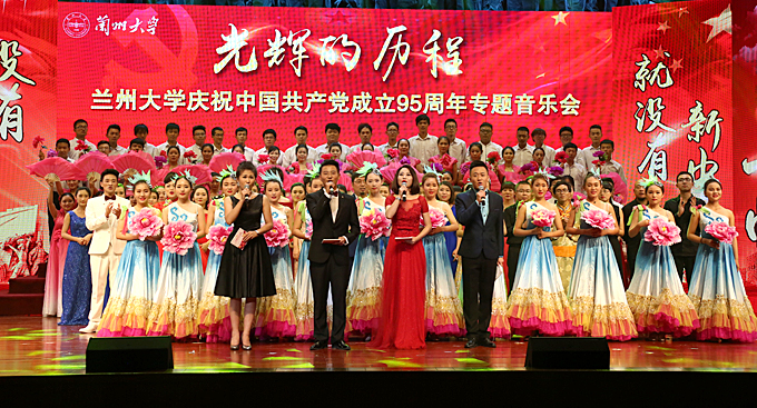 7月1日晚,兰州大学“光辉的历程——庆祝建党95周年专题音乐会”在盘旋路校区学生活动中心礼堂演出。校领导郭琦、曹红和广大师生共同观看演出。