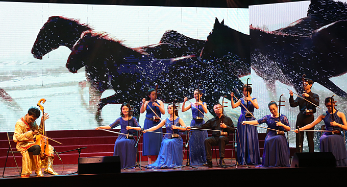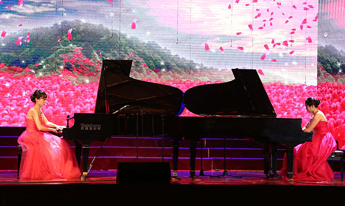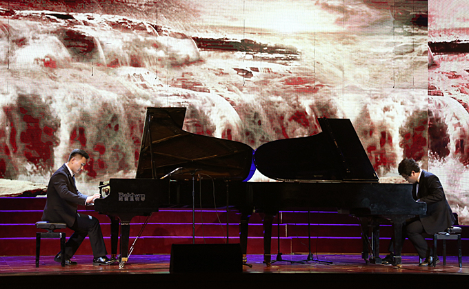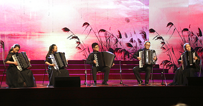 晚7点整,音乐会在合唱《忆秦娥·娄山关》中拉开帷幕。双钢琴协奏《黄河第一乐章——黄河船夫曲》、手风琴重奏《弹起我心爱的土琵琶》等一曲曲乐章或高亢、或悠扬,带领观众再次感受了中国共产党人浴血奋战、勇往直前的豪情壮志和必胜信念。女生小合唱《渔家姑娘在海边》·《天边有颗闪亮的星》、独唱《在希望的田野上》等一首首歌曲或优美、或雄壮,表达了人民对中国共产党的无限热爱和对美好生活的执着追求。忆往昔峥嵘岁月,观今朝繁花似锦,整场演出气氛热烈、激情昂扬,观众报以阵阵掌声。