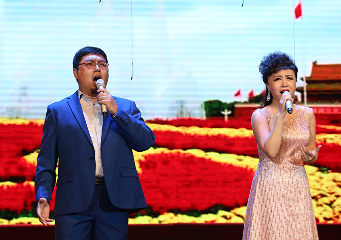 最后,演出在全体演员与观众大合唱《没有共产党就没有新中国》的歌声中圆满结束。