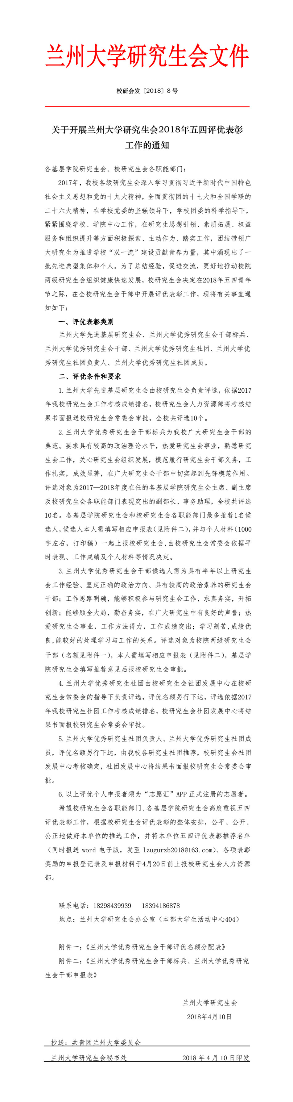 附件1:兰州大学优秀研究生会干部评优名额分配表.doc