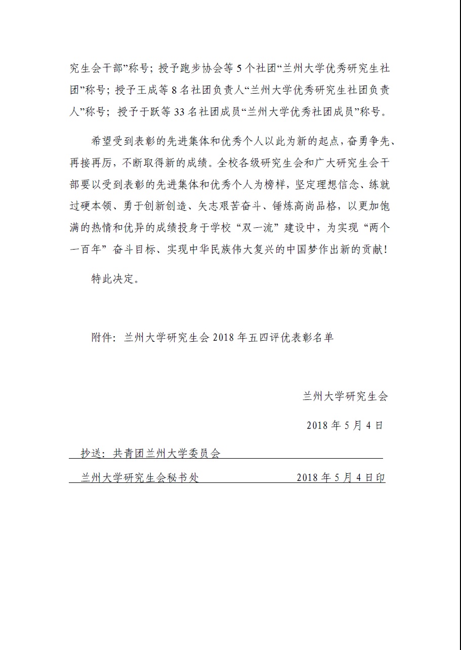 关于2018年五四评优表彰的决定